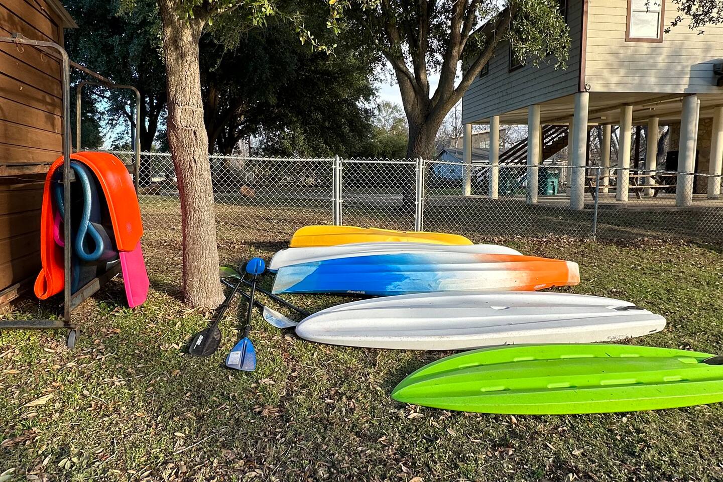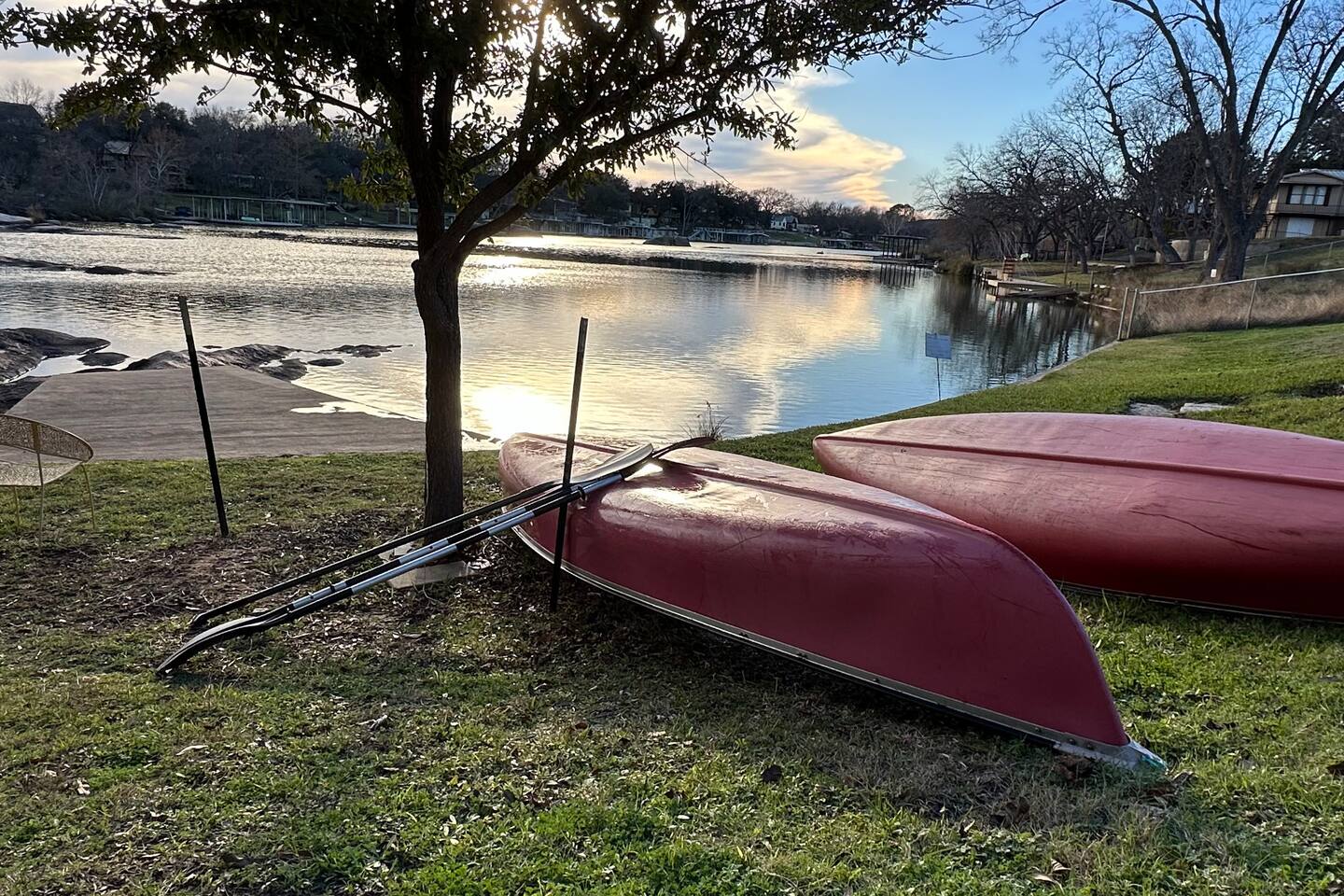 This area is what you definitely would classify as “country living”. To get here, you travel down a beautiful, curvy country road with cattle guards and the occasional black cow or turtle in the road that you might need to maneuver around. Once here, during the week it is very quiet because most people are weekenders. Come Thursday, you start to see a little more activity, but it always stays very peaceful, nothing like a resort, although you will see grandparents and grand-kids driving by on golf carts. You have privacy in this home including from the porch with an empty fenced lot to one side and a seldom used home next door. The rental next door's access to the water is around a corner and screened by trees and bushes. You have use of our canoe and foam floats, but also, canoes, kayaks, and paddle boats are available for rent at Inks Lake State Park, minutes away. Legends Golf Course is 15 miles away in nearby Kingsland. You can get anywhere on Lake LBJ from our neighborhood boat launch. There are fun places to motor up to that serve food, supplies, and have bands on weekends. One will even deliver groceries to your docked boat! The antiquing in this area is truly amazing. Very reasonable prices at most Burnet shops. My antique dealer friend and I have not even explored Kingsland yet because there are such great finds in Burnet, it takes a couple of days to finish and we run out of time. Start with the Knot Hole!