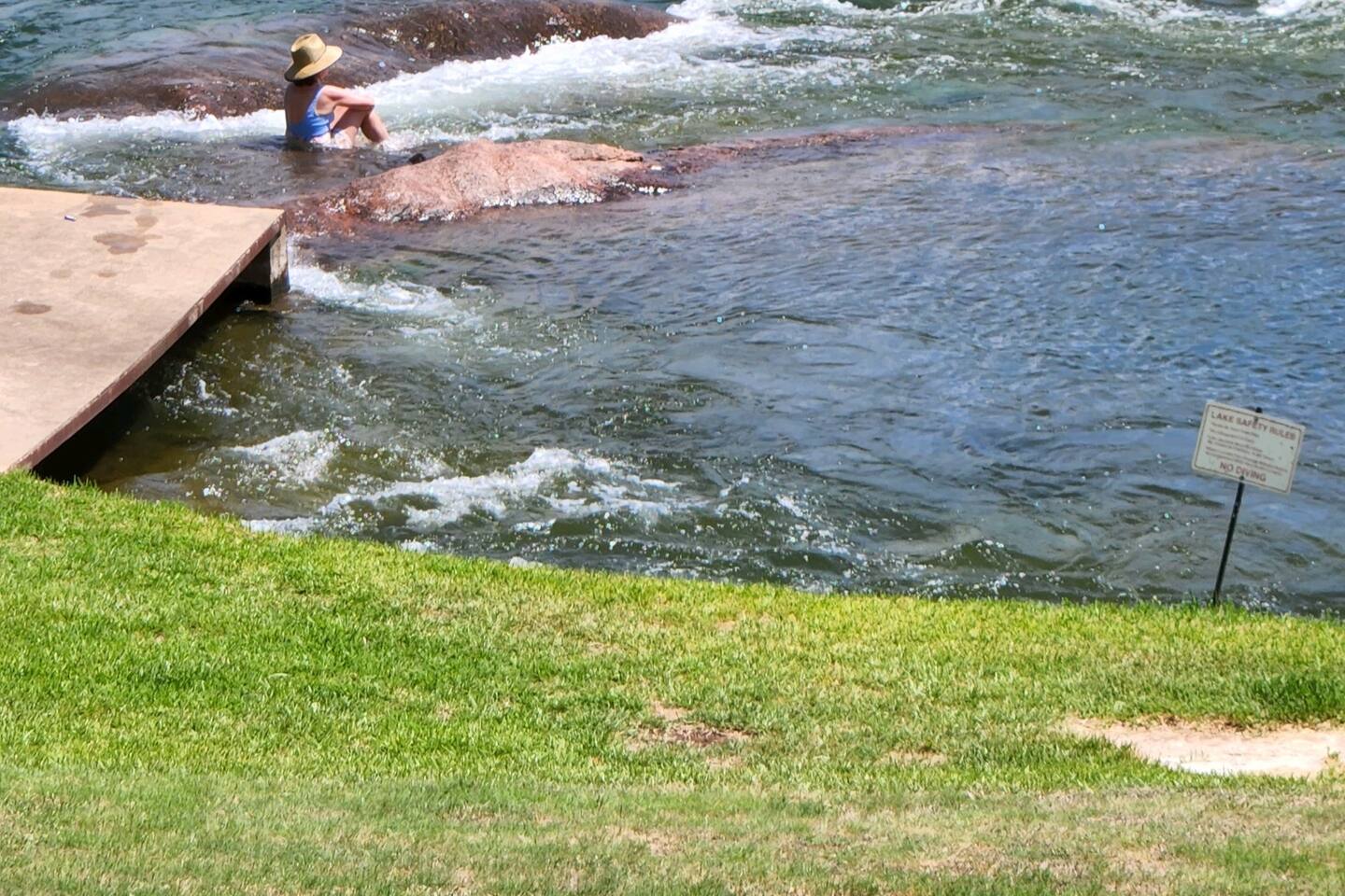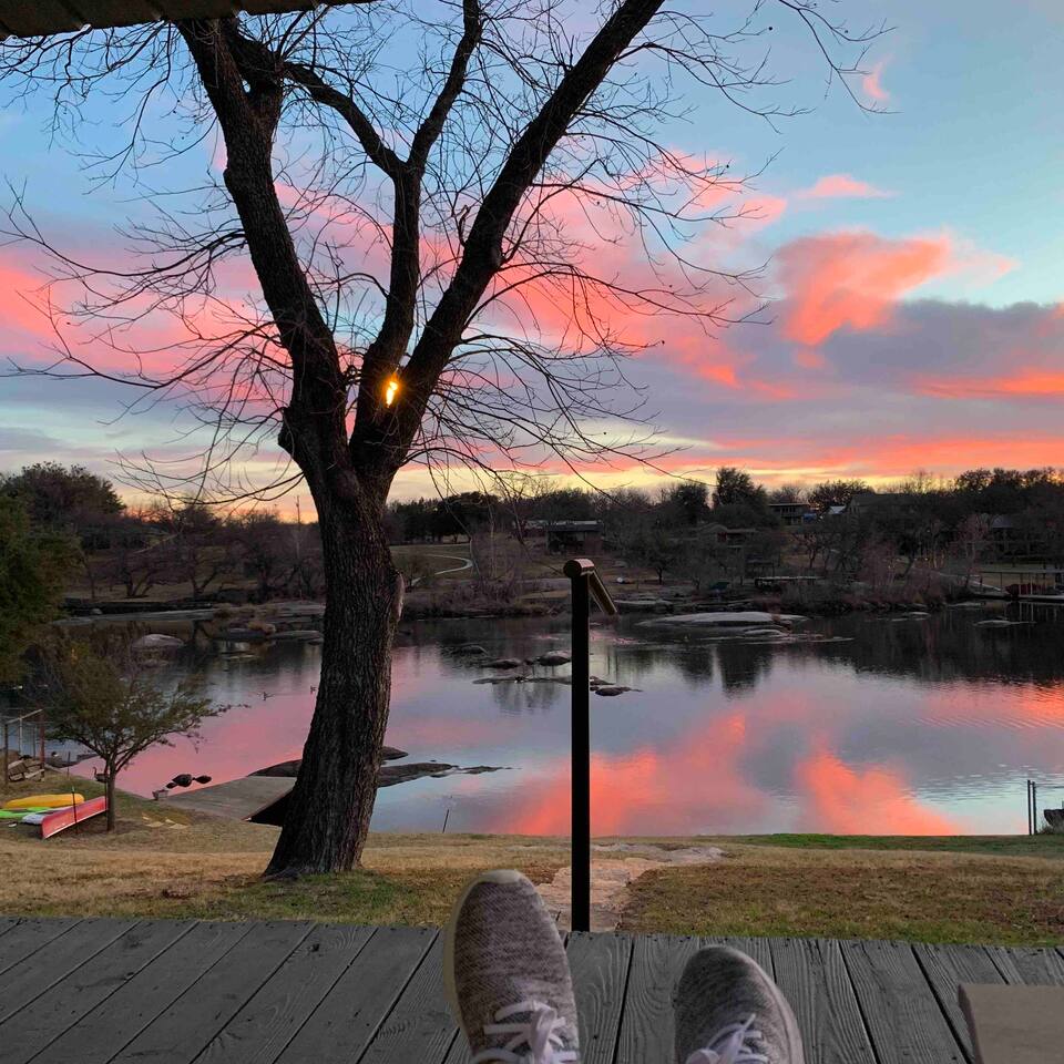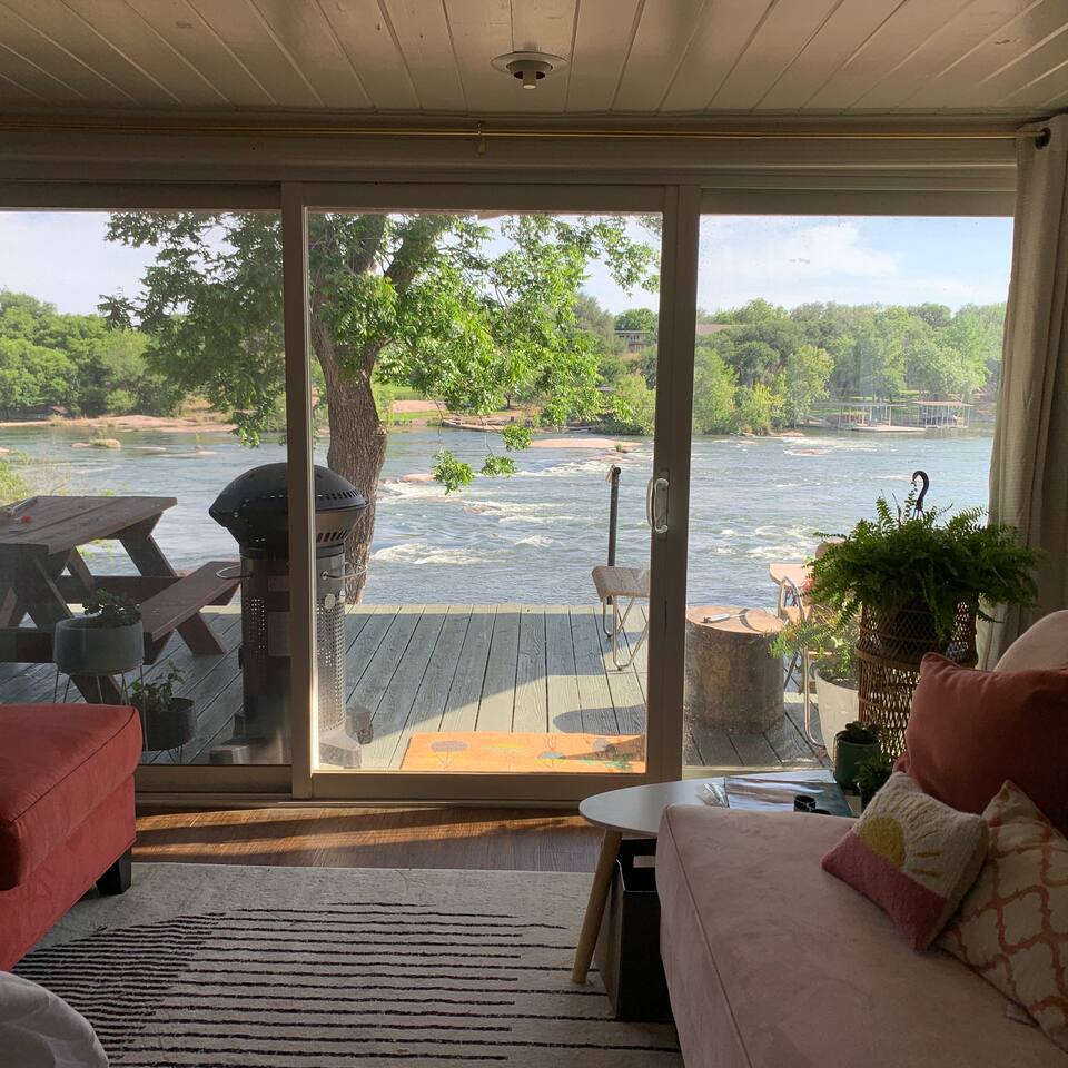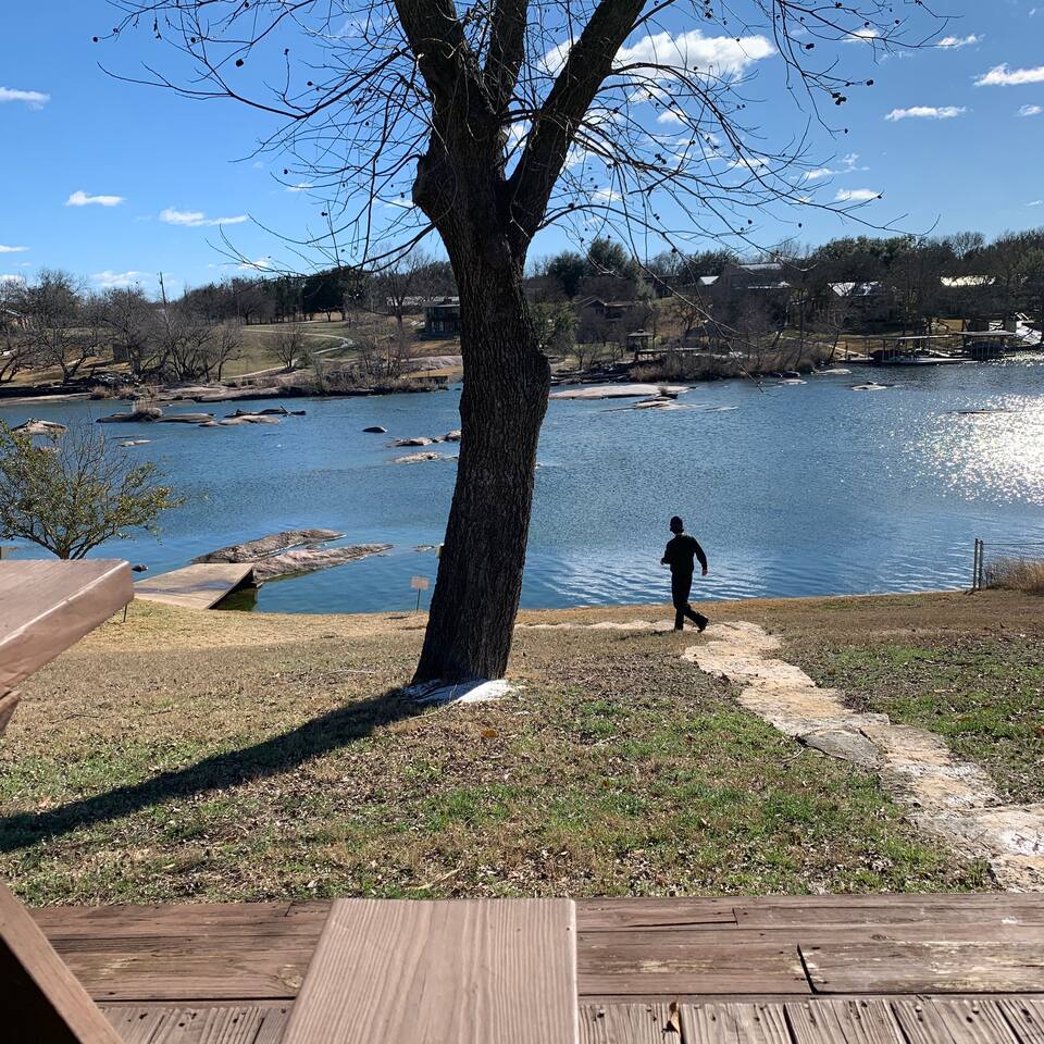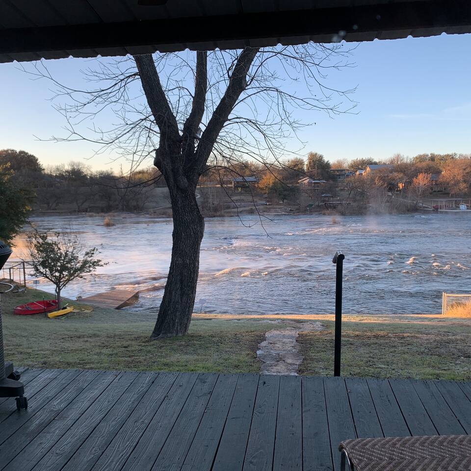 -Guests will be required to sign a release before entering/accessing the property. -Houses on and near the lake are known to attract abundant wildlife, including insects such as little flies and spiders. We have found we can avoid the little flies most efficiently by leaving lights off outside and near windows. -This is REAL country. We occasionally have a squirrel or other critters that like the place too. We discourage them from coming to check things out and encourage them to leave, but, as a city girl, I finally accepted that the critters will come by out here. For example, I think we are on a skunk’s regular path for foraging. Sitting on the deck at dusk, he will occasionally walk past the deck sniffing the dirt. If this type of encounter isn’t for you, you may want to go to Fredericksburg or somewhere less wild. -Lake LBJ is part of the Highland Lakes chain and is managed by the Lower Colorado River Authority or LCRA. There are two lakes and dams higher in the chain that feed LBJ and the LCRA uses these dams, especially Buchanan Dam, to generate hydroelectric power by releasing water. This is what the locals call "generating" and it creates wonderful rapids right in front of this property due to the large granite boulders. This is a special and unique feature of this property, that you can step directly onto the granite from the dock, no swimming through rapidly moving water to get to a rock to sit on and enjoy the swirling water. LCRA does not publish its schedule for generating, but, to date, generating takes place daily for several hours in the afternoon and then the rapids slow down to stillness again. -The cabin is nice and cozy with one large room upstairs and a full bathroom with shower on each floor, no tub. -The ceiling on both floors is 7’ high, those over 6’ tall will need to duck to enter the stairs doorway which is 6’ high. Once through the doorway, no more height restrictions, there is no ceiling on the stairs, it is open to the upstairs room.