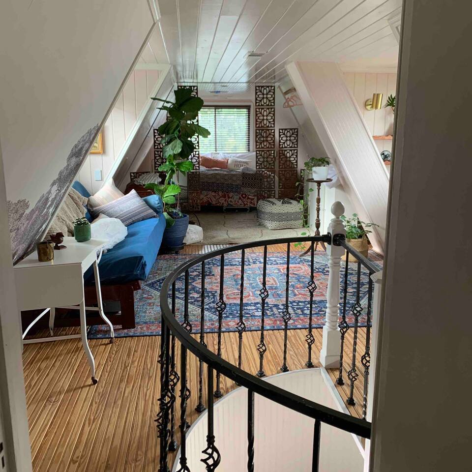-This video from a neighboring Airbnb shows what it's like to be on the water here: https://youtu. be/s2BqrCeFGL8 -The entire second floor is a large bedroom where there is a new memory foam king bed and a full size futon. -There is a dedicated nook with desk and a large window to distract you from work, also a full bathroom with new corner shower. -The rainfall-style shower head in both bathrooms has strong hot water. -This property has the fastest internet provider in the area, although occasionally there can be an interruption in service. -Downstairs has a new fold out couch with upgraded memory foam queen mattress, this is not your grandma's fold out bed! -There is also a smaller futon which could sleep a child.