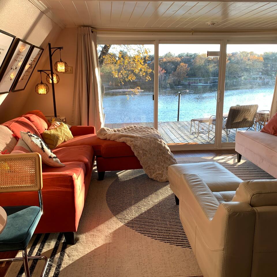 Private with stunning views, this beautifully refurbished 1950’s A-frame on Lake LBJ is the perfect weekend getaway. Enjoy the wildlife and peaceful setting from the back deck or, if it’s cold, stay toasty inside and view the wildlife while snuggled in front of the fire, listening to vintage albums. You will likely not see another person unless you venture out to the nearby state parks and/or wineries or to town for antiquing. Canoe & gear provided, you bring the bait!